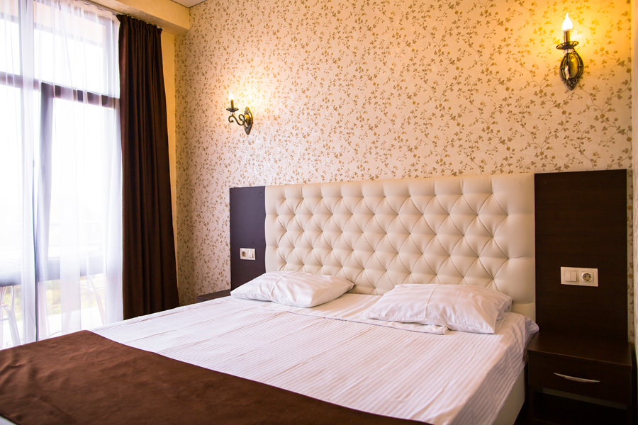 К вашим услугам уютный номер с интерьером в светлых теплых оттенках и двуспальной кроватью king – size. Идеальный выбор если вы едете отдыхать вдвоем. В стоимость номера включен завтрак.